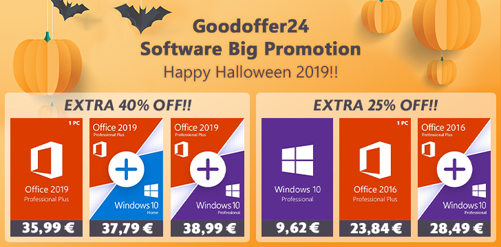 Mai sunt câteva zile până la o mare sărbătoare din SUA adoptată la nivel global: Halloween-ul. GoodOffer 24 este un magazin online chinezesc ce comercializează cd-key-uri de Windows 10 și Office, iar pentru acest eveniment au ales o serie de promoții prin care să-i atragă pe cei interesați.