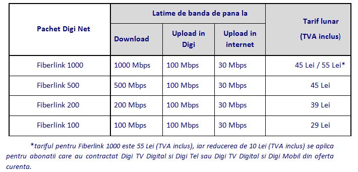 Creșterea vitezei urmează a fi resimțită din noiembrie 2014, în mod gradual. Practic, Digi Net Fiberlink 50 se transformă în Digi Net Fiberlink 100, fără să plătești în plus.