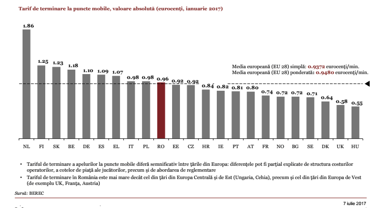 Tariful de interconectare în România a scăzut de la 3.07 eurocenți / minut la 0.96 eurocenți / minut în 2014. Acest tarif se aplică în momentul în care clientul de telefonie mobilă apelează în altă rețea.