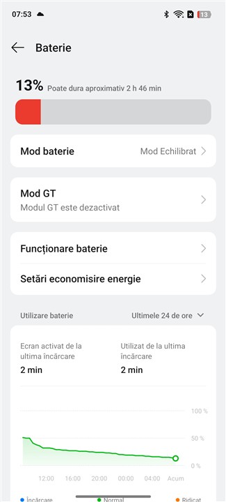 | Baterie și încărcare | 6000 mAh brut (5860 mAh net) Încărcare prin cablu cu maxim 45W |