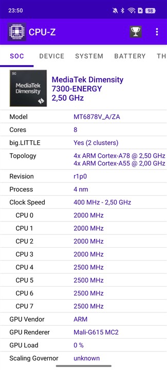 | Procesor | MediaTek Dimensity 7300 Energy pe 4 nm, octa-core cu 4 x 2.5 GHz Cortex-A78 + 4 x 2.0 GHz Cortex-A55 |