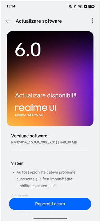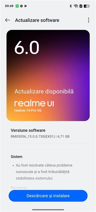 Android 15 cu interfața Realme UI 6.0 pe realme 14 Pro: