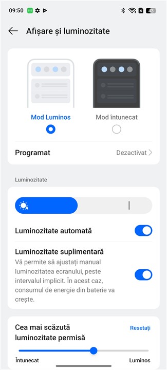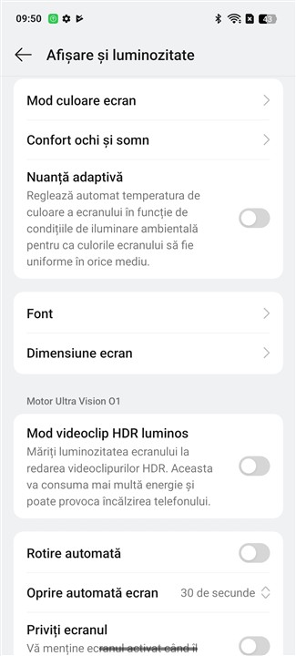 Capturi de ecran din meniul cu setări ale afișajului de pe realme 14 Pro: