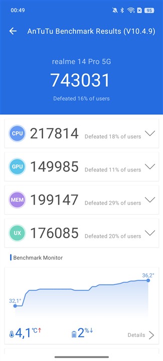 În timpul testelor, realme 14 Pro nu a devenit fierbinte, s-a încălzit simțitor, dar absolut nimic care să fie de speriat, cum s-ar spune.