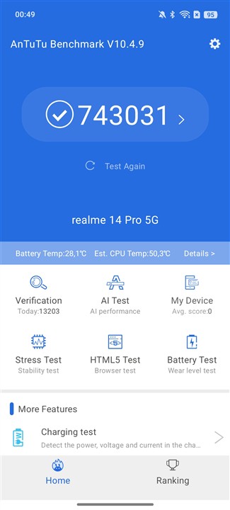 | AnTuTu v10.4.9 / v10.4.5 | 743031 puncte | 830569 puncte |