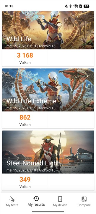 | 3DMark Wild Life Vulkan Wild Life Extreme Vulkan Sling Shot OpenGL ES 3.0 Sling Shot Extreme OpenGL ES 3.1 Steel Nomad Light Vulkan | 3168 puncte 862 puncte - - 349 puncte | 4134 puncte 1077 puncte 6946 puncte 5528 puncte 369 puncte |