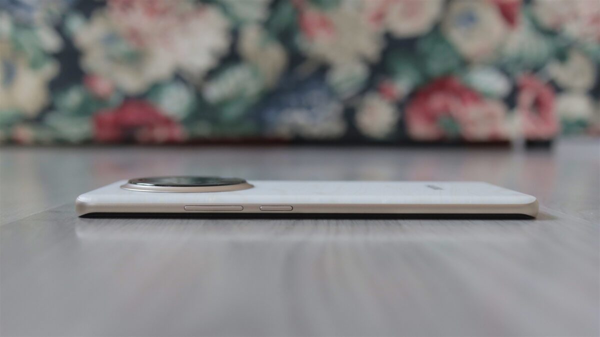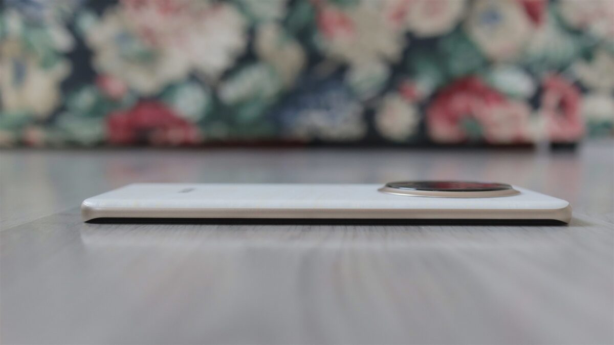 Aici mai amintesc că realme 14 Pro în versiunea Pearl White este foarte spectaculos atunci când este expus la temperaturi scăzute, moment în care detaliile aurii sub forme ca de valuri își schimbă culoarea într-un albastru intens.