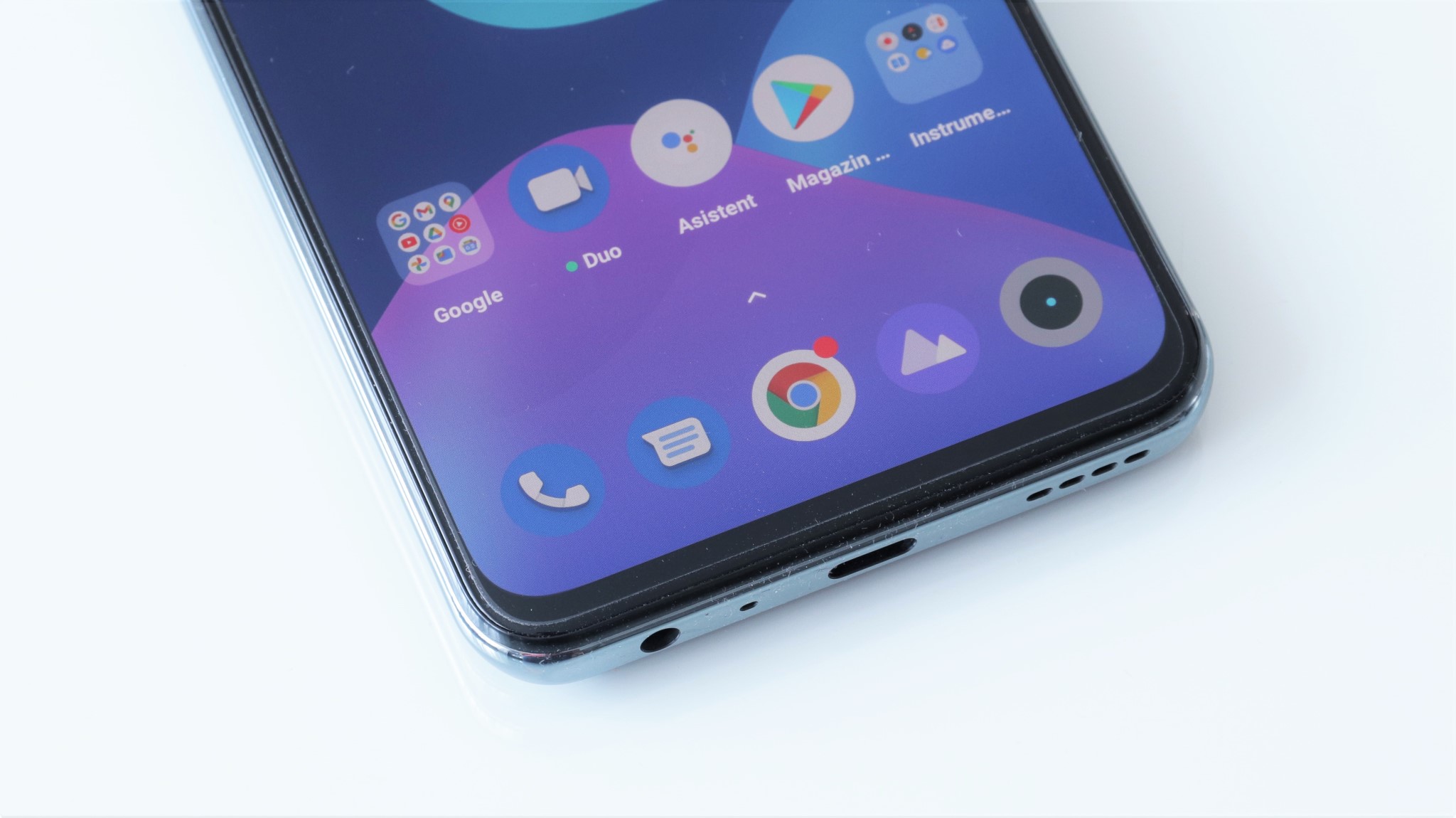 Elementele fizice de conectivitate sunt dispuse astfel: jos avem portul USB Type-C, jack-ul audio de 3.5 mm, difuzorul și microfonul principale, pe stânga vedem butoanele pentru reglarea volumului și slotul pentru cartele sim, sus este doar microfonul secundar, în timp ce pe dreapta avem butonul Power.