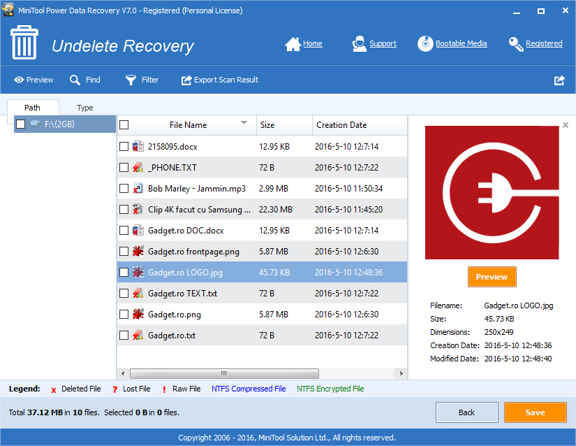 MiniTool Power Data Recovery poate fi descărcată de pe siteul oficial și în varianta gratuită ce oferă posibilitatea de a recupera date în limita a 1GB. Versiunea Personal ce elimină această limitare costă echivalentul a $69. Avem 10 coduri de activare pentru această versiune iar dacă vrei să intri în posesia unuia trimite un mail la adresa ovidiu.ionita @ gadget.ro – primul venit, primul servit.