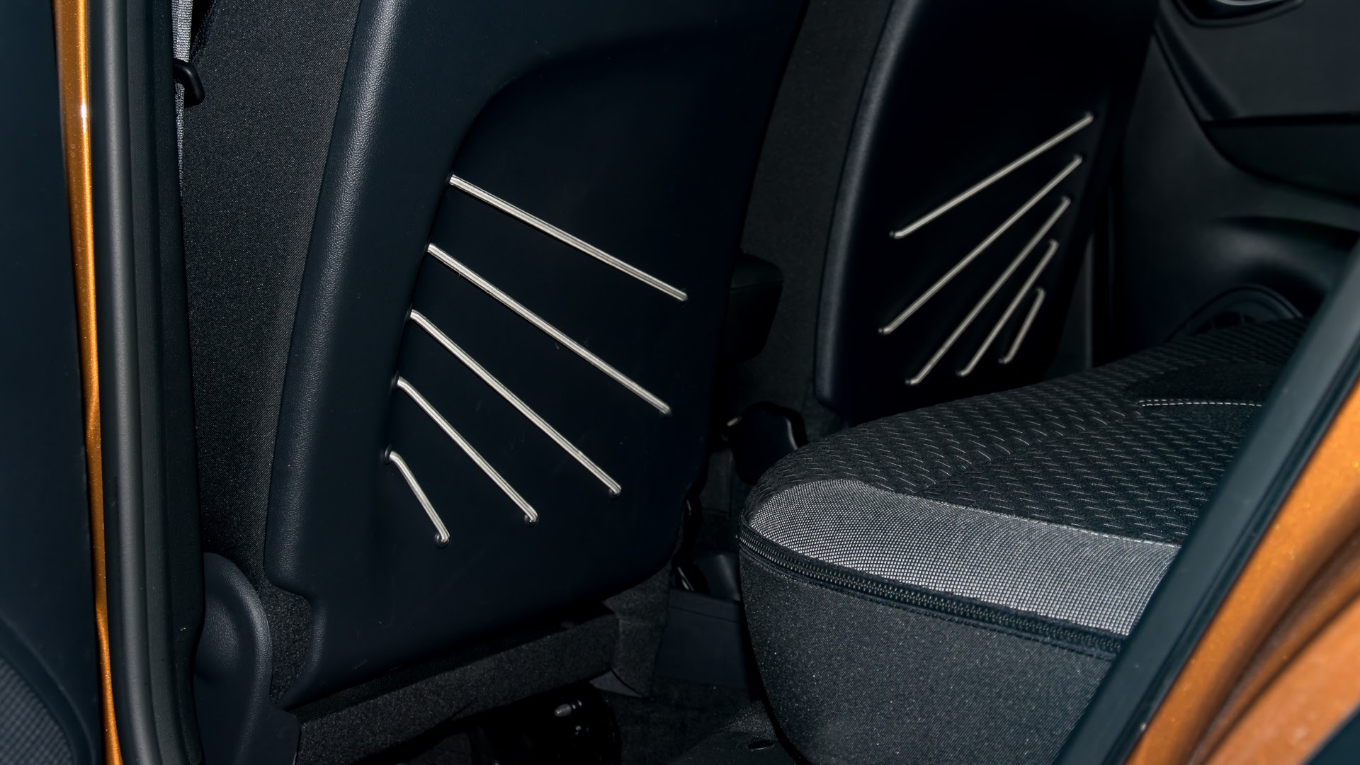 Pe spatele scaunelor față sunt câteva benzi elastice dispuse într-o formă de raze de soare, interesante ca design, dar iarăși, mai puțin practice decât niște buzunare clasice: