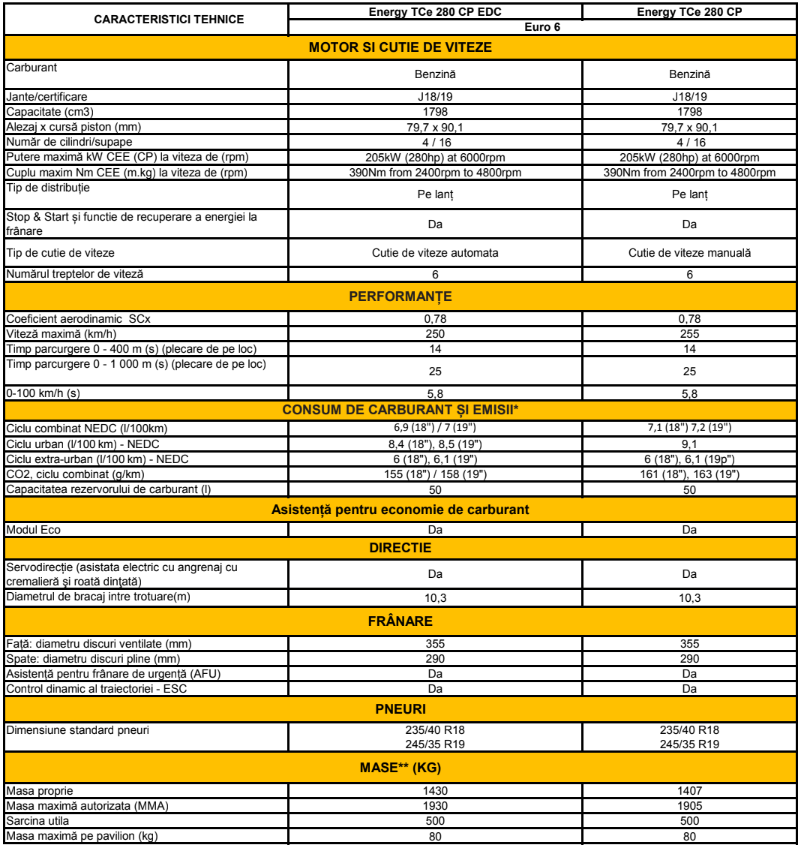 În imaginea de mai sus aveți prețurile de plecare pentru Renault Megane RS 2018, atât în versiunea cu transmisie manuală, cât și pentru cea cu cutie de viteze automată EDC, cu dublu ambreiaj și 6 trepte. Tot aici puteți analiza și lista de dotări standard, despre care pot să spun că include mult mai mult decât ai putea avea nevoie de la un hot hatch.