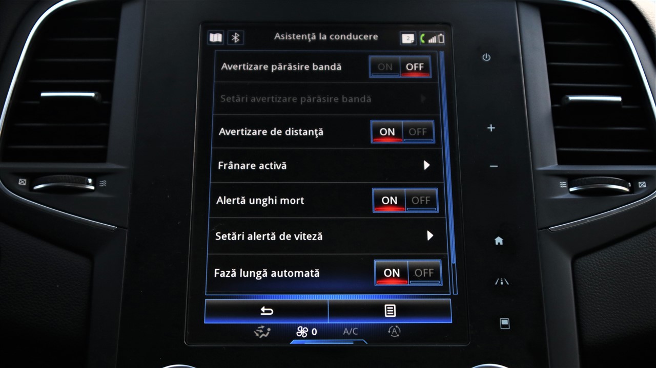 Echiparea Intens aduce standard sistem de infotainment R-Link 2 cu ecran tactil de 7 inch așezat în mod landscape, dar mașina de test a venit cu R-Link 2 cu display de 8.7 inch în mod portrait (opțional), așa cum am văzut și la Renault Koleos.