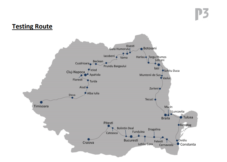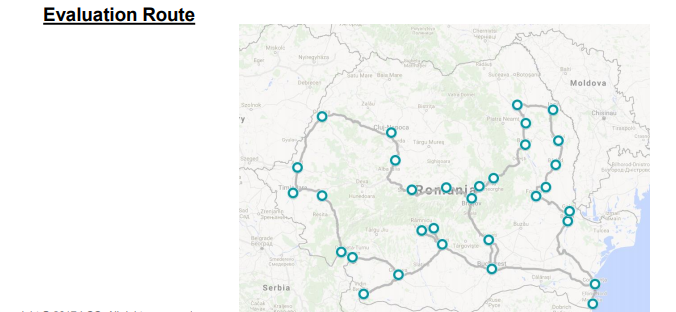 Nu se vede foarte clar pe hartă, dar au trecut prin București, Cluj-Napoca, Iași, Timișoara, Craiova, Constanța, Brașov, Arad, Galați, Pitești, Ploiești, Oradea, Bacău, Focșani, Brăila, Sibiu, Râmnicu Vâlcea, Vaslui, Drobeta-Turnu Severin, Sfântu Gheorghe, Mangalia, Târgu Secuiesc, Curtea de Argeș, Făgăraș, Pașcani, Aiud, Roman, Tecuci, Bârlad, Orșova, Lugoj, Calafat + drumurile și localitățile dintre aceste puncte-cheie.