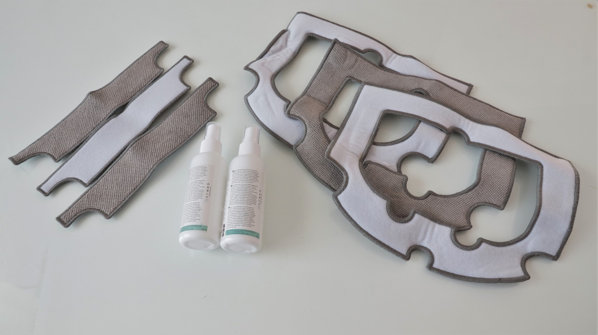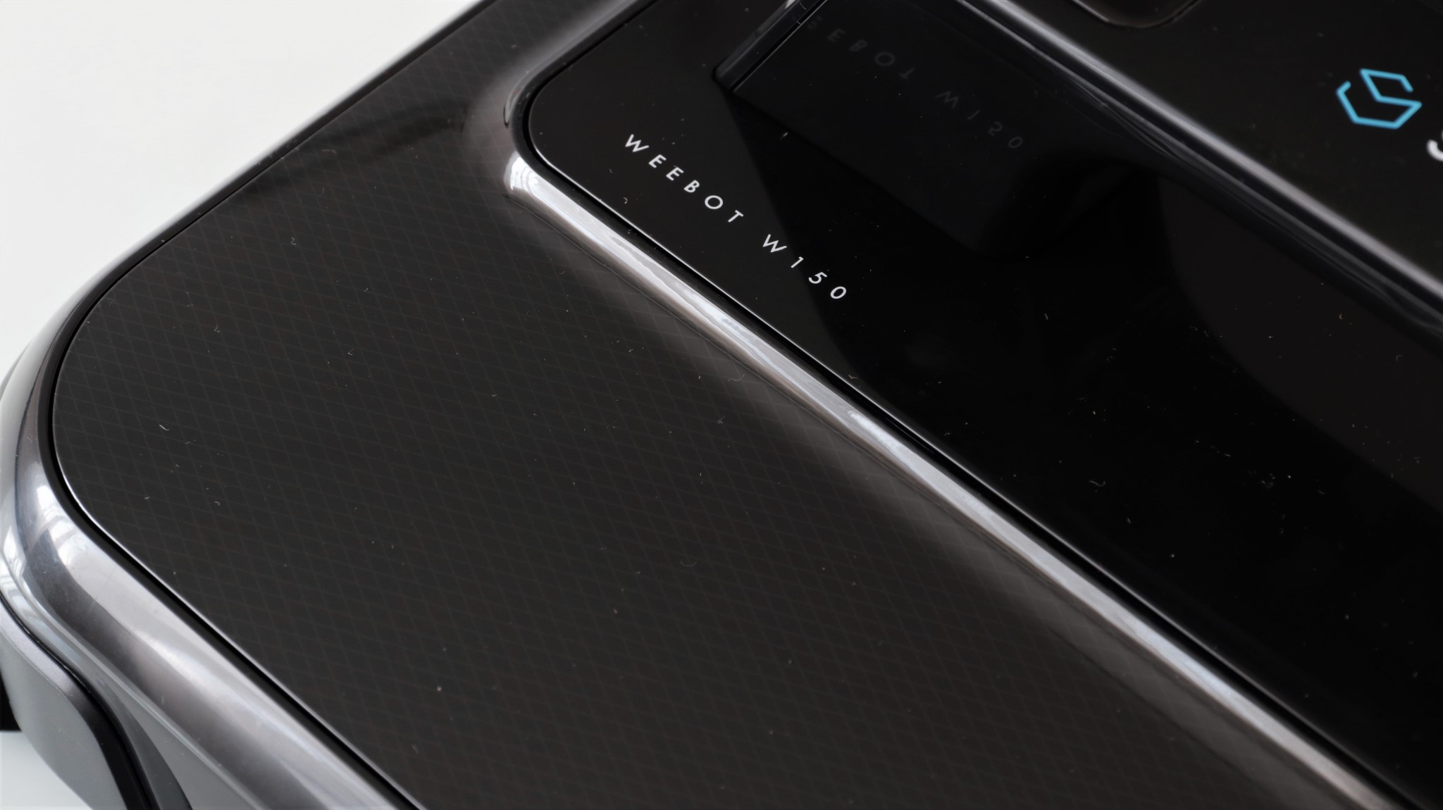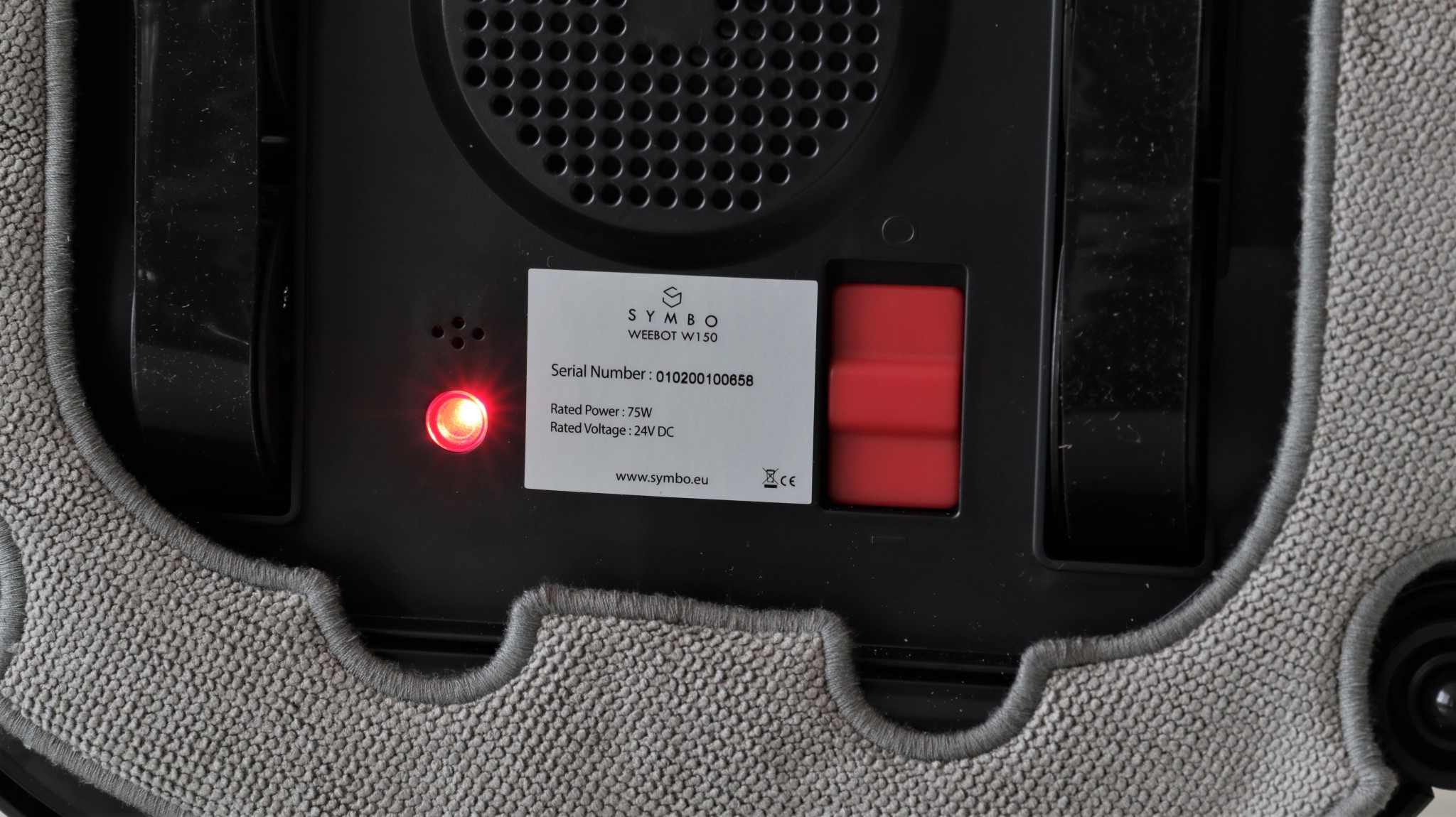Cum curăță Symbo Weebot W150? Laveta din față se mișcă rapid și vibrează ușor, dislocând astfel murdăria. Deși nu se specifică nicăieri în manualul de utilizare ce să faci cu soluția de curățare din cele două sticluțe a câte 100 ml, eu am aplicat puțină soluție pe acestă lavetă după ce, în primele două încercări de curățare le-am lăsat uscate, așa cum erau în cutie. Fiindcă nu am remarcat o curățare temeinică, am aplicat puțină soluție pe laveta mică, cea care se mișcă, iar rezultatele au fost altele.