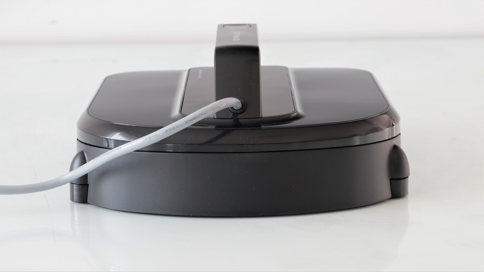 Cablul de alimentare iese din robot prin partea din spate a mânerului și este de culoare gri. Firul prezintă la capăt o mufă în care poate fi introdus direct cablul din adaptorul de alimentare sau cablul de prelungire. Există și un mecanism de fixare a mufelor cu un sistem prin înșurubare, astfel că nu vei putea deconecta cablurile accidental. Dacă folosești și cablul prelungitor, te vei alege cu un fir în lungime totală de circa 4 metri, de la priză până la robot.