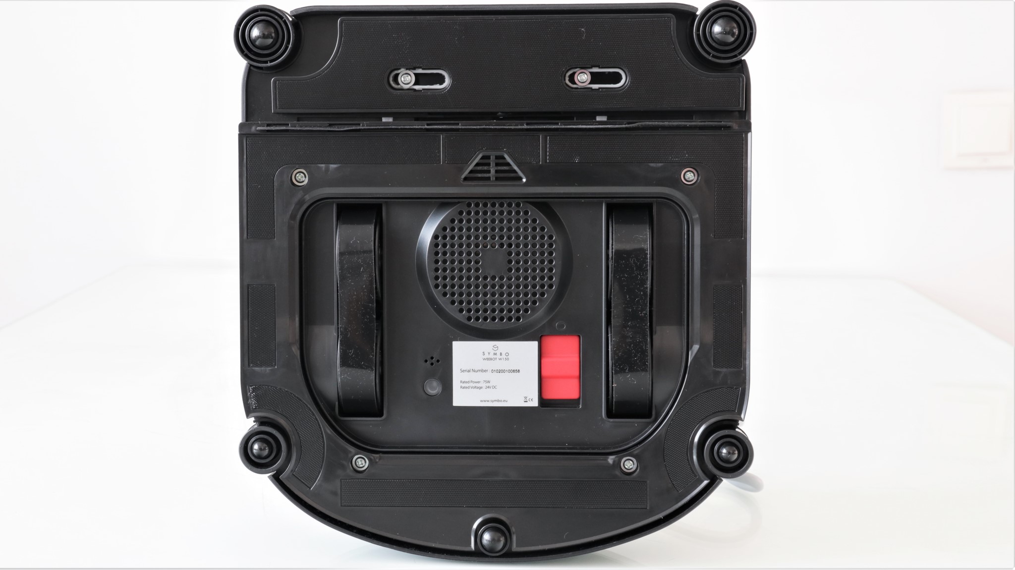 Robotul pentru curățarea automată a geamurilor Symbo Weebot W150 pare zdravăn, solid asamblat, nu te duce cu gândul la un produs de slabă calitate.