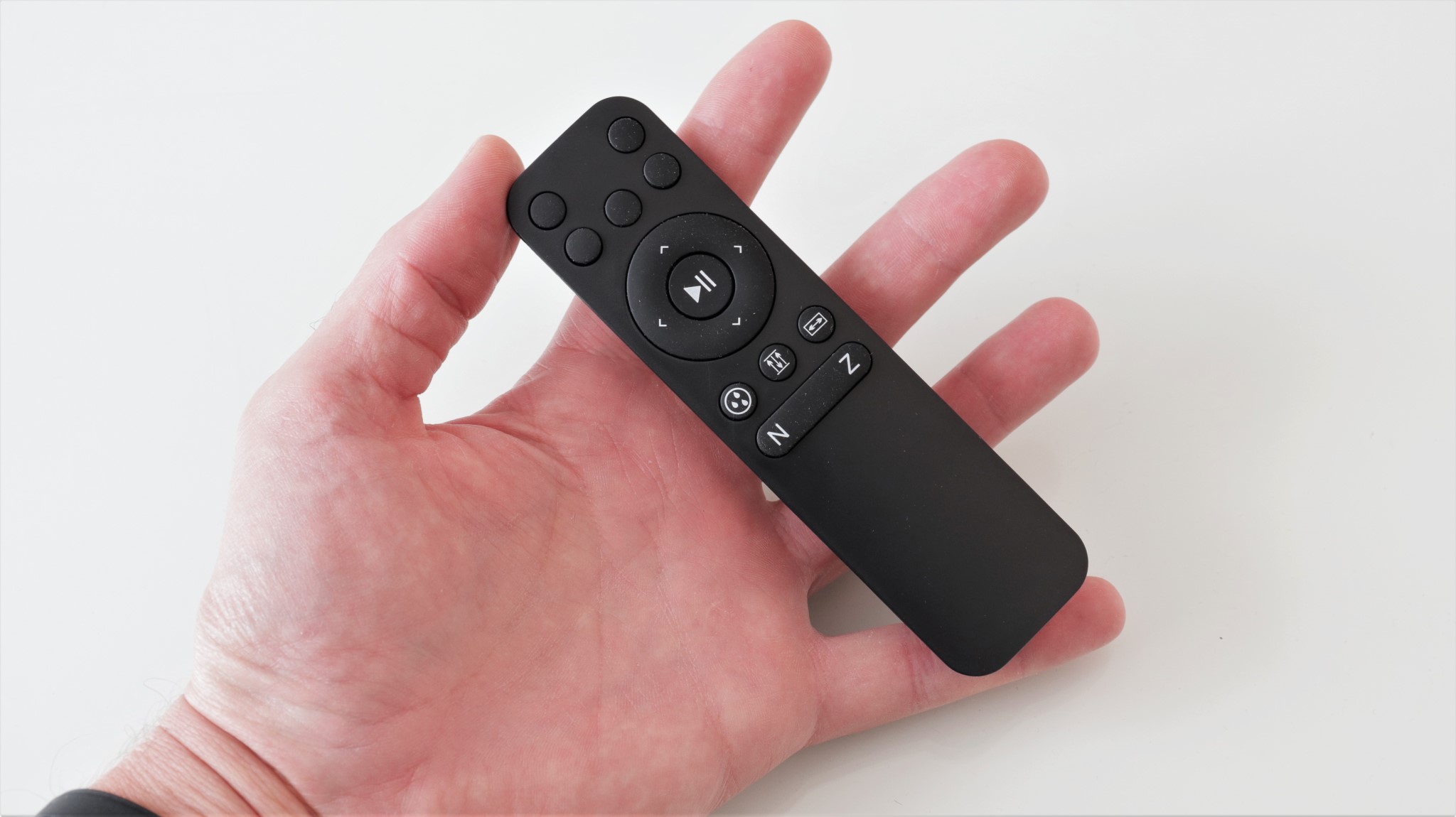 Telecomanda din pachet îți dă posibilitatea să preiei controlul asupra anumitor funcții, atunci când este nevoie sau când utilizatorul crede de cuviință. Are dimensiuni mici și doar câteva butoane, dintre care cele 5 din partea superioară nu îndeplinesc nicio funcție. Cel mai probabil, telecomanda este cumva una universală ce a fost adaptată acestui tip de dispozitiv.