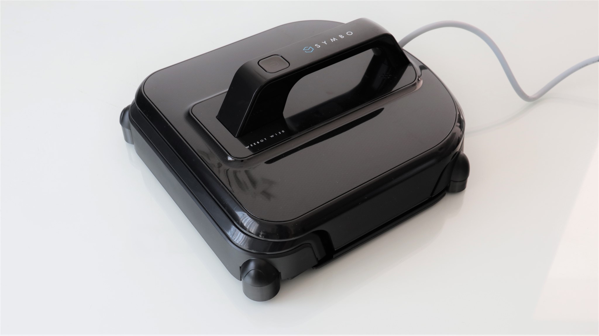 Robotul pentru curățare geamuri Symbo Weebot W150 seamănă cu un aspirator robot cu un mâner ca de fier de călcat. Comparația nu este cea mai fericită, dar mie cam așa mi s-a părut că ar arăta acest dispozitiv.
