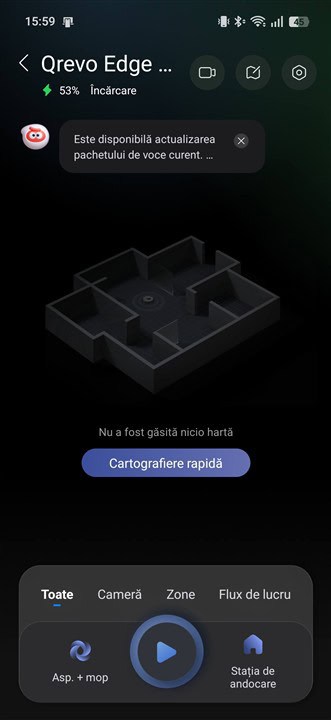 De la momentul de la care ai început să desfaci cutia și până ce ai pus totul în ordine, la nivel hardware, să zic așa, nu trec mai mult de 10 minute. Doar dacă vrei să analizezi ce și cum este posibil să fii gata de „acțiune” mai târziu, altfel Roborock Qrevo Edge 2 Pro nu pune nicio problemă de instalare.
