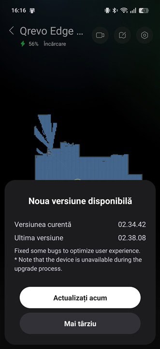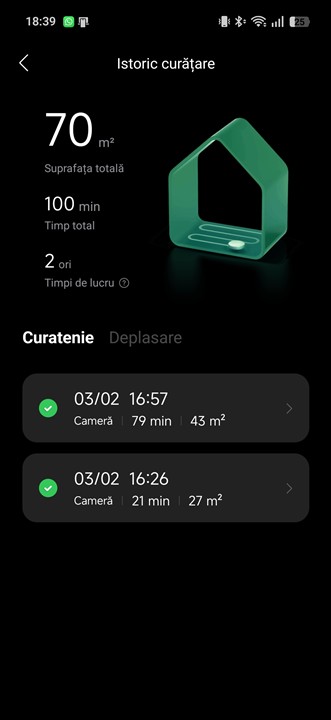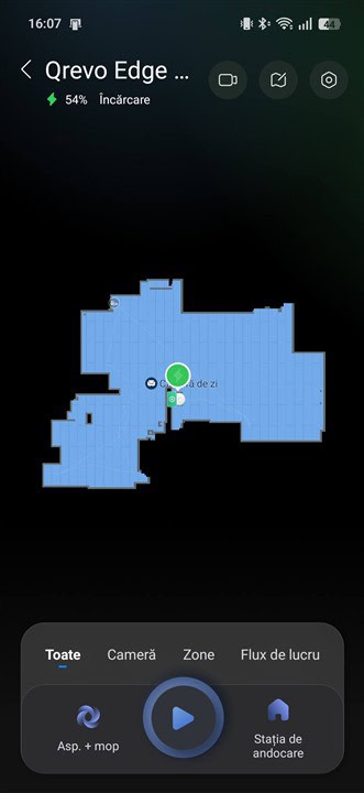 Așadar, la aspirarea pe modul automat / inteligent a celor circa 30 mp în 21 de minute, Roborock Qrevo Edge 2 Pro a consumat doar 7% din baterie. Foarte bine, mai ales că au fost și covoare unde aspirarea s-a făcut către intensitate maximă.