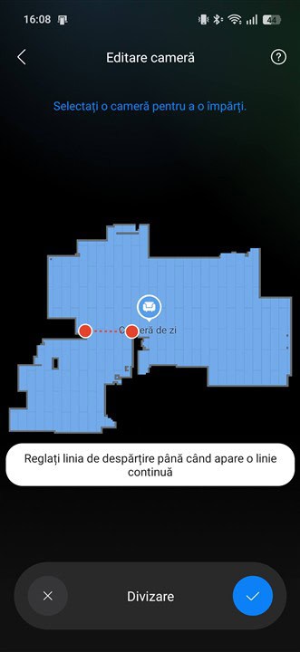Eu prima dată am ales ca aspiratorul să facă o cartografiere rapidă a zonei de living + bucătărie (open space), pentru care doream să fac testele de curățare. Trebuie să recunosc că nu mă așteptam ca această primă cartografiere să dureze numai circa două minute și jumătate, mai ales că harta pe care mi-a afișat-o la final era una detaliată și întocmai precum este acea parte a casei. Fără discuție, multitudinea de senzori, iar aici în special cel Li-DAR este baza, dar și camera video frontală scanează atent mediul înconjurător, iar procesarea matură a datelor oferite de aceștia și experiența Roborock chiar fac treabă rapidă și detaliată.