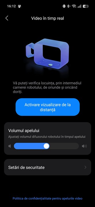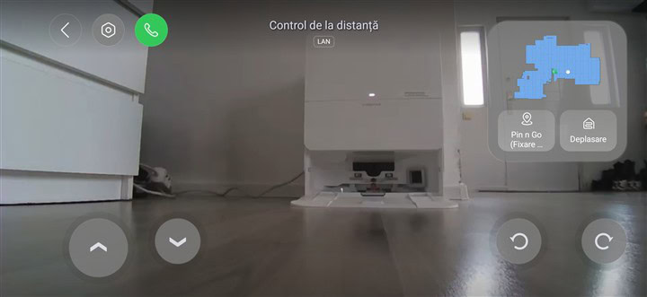 Ar mai fi de amintit și funcția de „cameră de supraveghere”. Practic poți activa oricând camera video frontală de pe robot și vedea live pe ecranul smartphone-ului, în aplicația Roborock, întocmai imaginea preluată de acea cameră. Poți deplasa robotul ca din telecomandă din butoanele de pe ecranul telefonului și astfel poți vedea mai toată locuința, în toate camerele unde poate ajunge Roborock Qrevo Edge 2 Pro. Nu doar atât, dar există și microfon și difuzor pe roboto și practic poți auzi ce se întâmplă în casă, dar și transmite mesaje. Ideal pentru animale de companie sau chiar copii, de ce nu?!