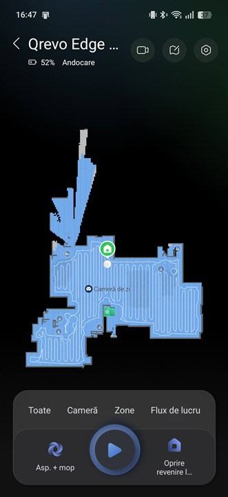 Ca să vin aici cu o concluzie, Roborock Qrevo Edge 2 Pro impresionează cu adevărat prin modul de aspirare al covoarelor / mochetei. Cei 25000 Pa putere de aspirare aș aprecia că nu sunt doar pe hârtie, ci își arată valoarea în special pe covoare / mochete cu fir înalt (maxim 3 cm) și des. Și la spălare se descurcă foarte bine, iar pentru tine curățarea completă a podelelor nu presupune niciun efort. Foarte rar va fi nevoie să umpli / golești rezervoarele de apă curată / murdară, să golești sacul de praf din stație și să repui detergent de podele în recipientul dedicat. În rest, nu ai mai nimic de făcut, deși poți intra adânc în configurarea tuturor opțiunilor din aplicația Roborock și să alegi în detaliu scenarii precise de curățare, să setezi zone interzise sau pereți virtuali, la nevoie, să alegi programe (pe ore, zile etc) de curățare și multe, multe altele. Ideea este că Roborock Qrevo Edge 2 Pro îți pune la dispoziție numeroase opțiuni, dar poate face și totul complet automat, iar eu am observat că se descurcă de minune în acest mod, grație multiplilor senzori și a experienței Roborock pe zona de roboți de aspirare / curățare.