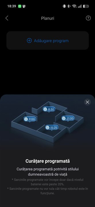 - multiple funcții și opțiuni disponibile în aplicația Roborock, una cu o interfață și meniuri prietenoase;