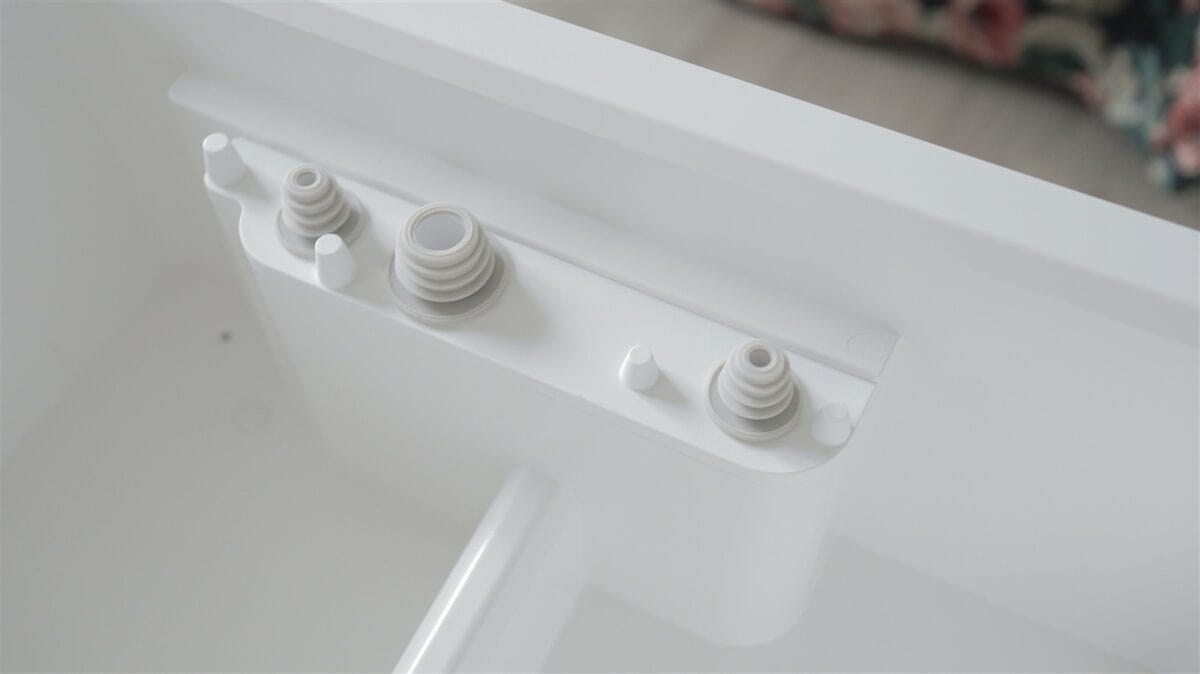 În zona unde robotul își va petrece mai tot timpul atunci când nu curăță podelele, adică cea unde „parchează”, trebuie să atașezi acel element pe care robotul urcă ușor în stație. În această zonă se pot observa multiple orificii, furtunașe și contacte metalice (pentru încărcarea acumulatorului din robot), și acelea sunt poate primele semne despre cât de complex este întreg ansamblul de curățare al Roborock Qrevo Edge 2 Pro.