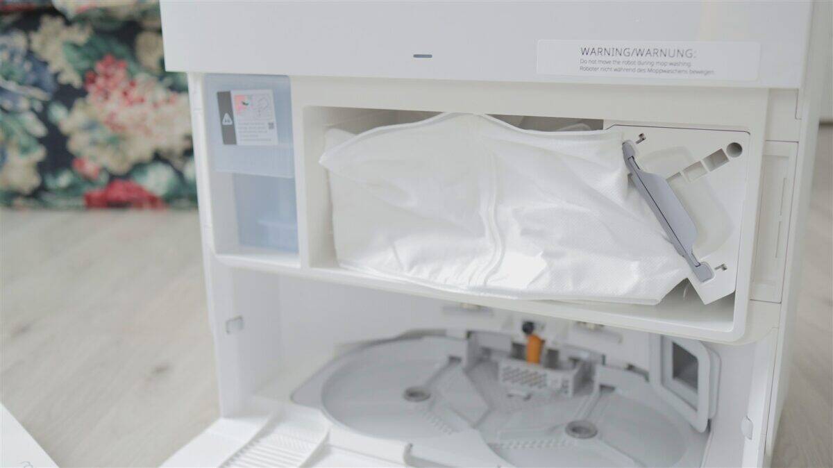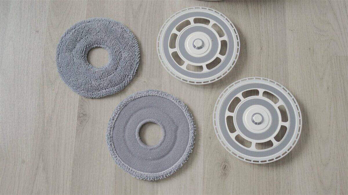 Mopurile au lavete detașabile, care se prind prin velcro, iar mai departe mopurile se fixează pe robot prin sistem magnetic, deci absolut nimic complicat dacă vrei să scoți tu manual mopurile de la locul lor de pe robot. Doar că nu va fi nevoie să faci asta prea des (de fapt foarte rar), fiindcă mopurile sunt curățate automat, igienizate și uscate direct în stația de andocare.