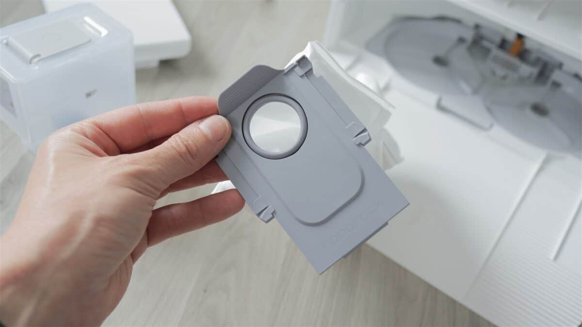 Trecând la robotul propriu-zis, acesta are un design cumva clasic. Este circular, iar sus are două butoane fizice (Power și Home), un senzor de înălțime dToF în fața acestor butoane, un senzor LiDAR care este retractabil către partea spate și un capac cu prinderi magnetice sub care este recipientul pentru murdărie cu filtru detașabil.