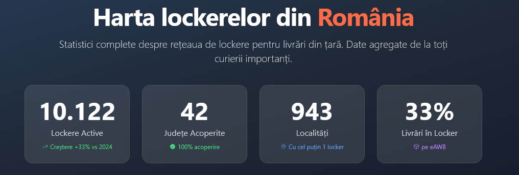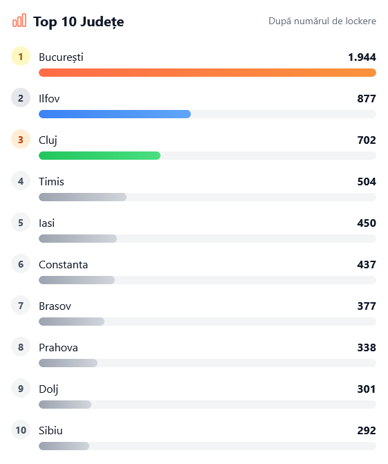 Cele mai multe lockere se găsesc în Bucureşti (1944 unităţi), Ilfov (877 unităţi), Cluj (702 unităţi), Timiş (504 unităţi) şi Iaşi (450 unităţi). Dacă vă interesează, aici puteţi găsi o hartă interactivă a tuturor lockerelor din ţară.