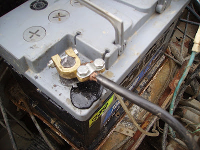 Baterie lipita cu smoala, merge si asa – dicton romanesc care se potriveste. Automobilul care are bateria asta – merge zi de zi, o Dacie 1310 din 96. Gaura a fost produsa de faptul ca s-a facut un scurt datorita polilor pusi invers( era ca la un aparat de sudura).
