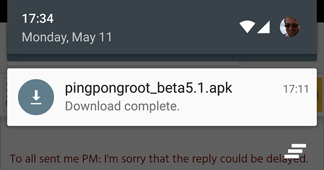 1. Descarcă aplicația PingPongRoot. Deschide browserul preferat pe telefon și fă click aici pentru a descărca aplicația. Poți face acest lucru și pe calculator și după să transferi fișierul descărcat în memoria internă a telefonului. Menționez că versiunea disponibilă în momentul redactării articolului este Beta 5.1. Îți recomand să vizitezi threadul oficial făcând click aici și să descarci ultima variantă disponibilă de la capătul primul post.