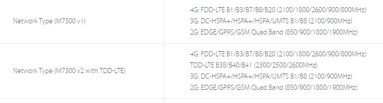Trebuie un pic de atenție în alegerea MiFi-ului, în sensul că sunt două ediții: M7300 v1 cu suport strict pentru FDD, iar M7300 v2 știe atât FDD cât și TDD-LTE).