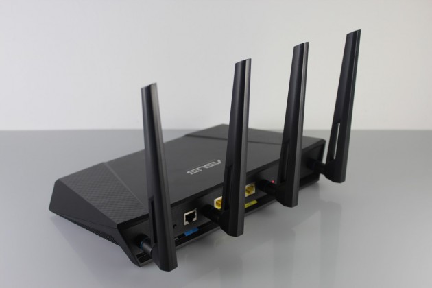 ASUS RT-AC87U arată de la poștă ca oferă performanță și impresionează vizual, cele 4 antene externe ies imediat în evidență. Apropo, cele 4 antene oferă o arie de acoperire mai mare cu 33% față de un router wi-fi cu 3 antene. Cel puțin acestea sunt informațiile producătorului taiwanez.
