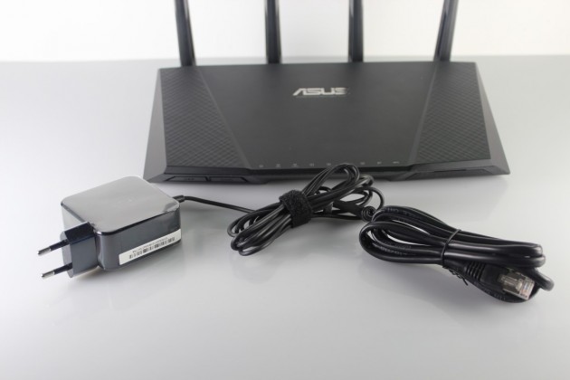 Apreciez suprafețele mate ce adună praful mai greu. Router-ul de obicei îl așezi într-un loc și acolo rămâne pentru totdeauna, praful se adună în timp, iar un router cu zone lucioase te face să-l ștergi mai des. ASUS-ul în cauză este mat și te scutește de această operațiune. Încărcătorul Alimentatorul din pachet mi-a aminit de cel folosit de ASUS și la seria de ultraportabile Zenbook.