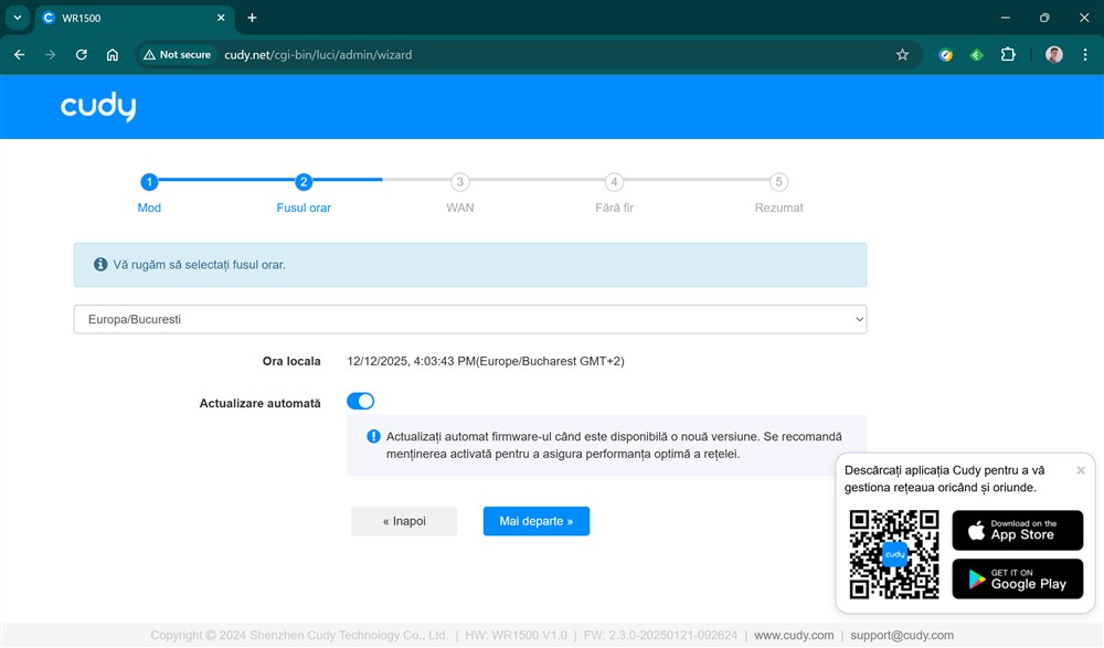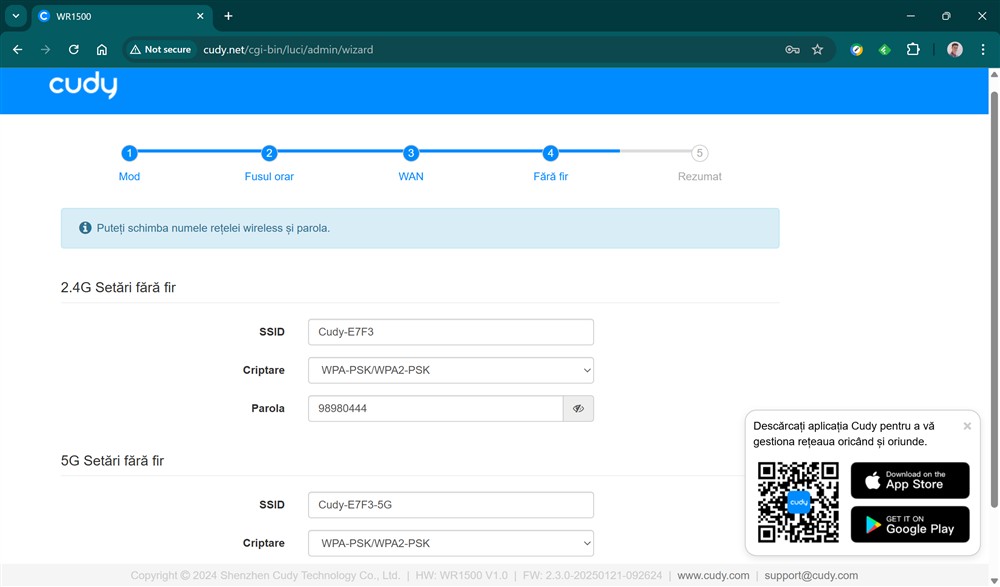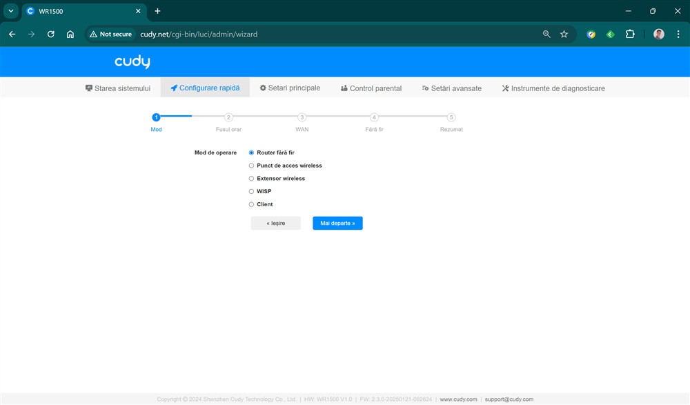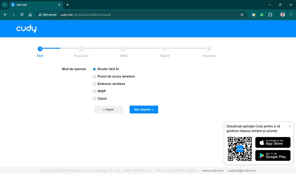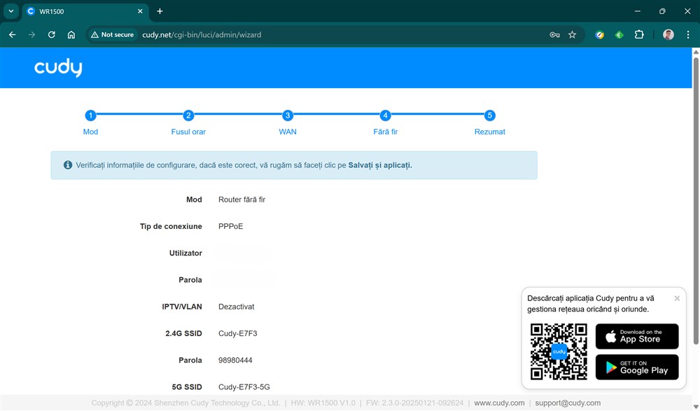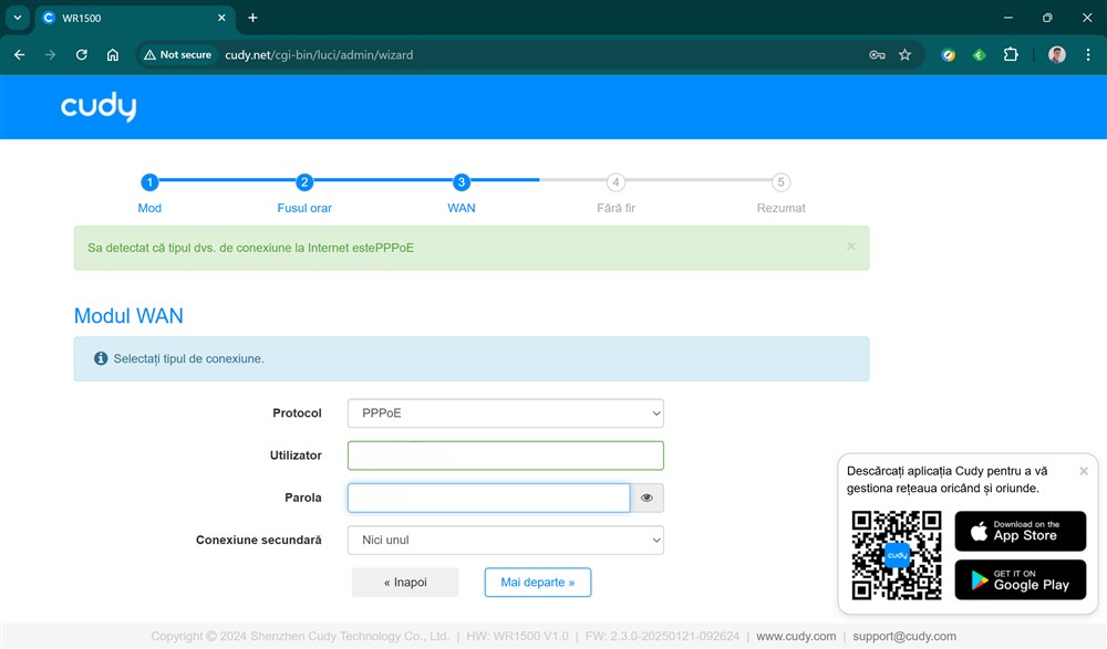Pașii de instalare și configurare inițială router wireless Cudy WR1500: