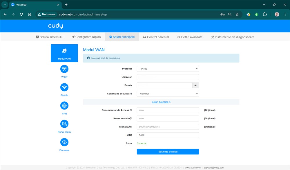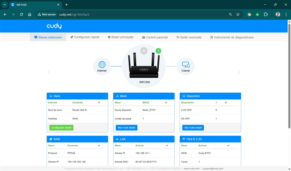 Router-ul wireless Cudy WR1500 a fost testat timp de 6 zile și va rămâne la noi. Întreg conținutul acestui review aparține strict autorului și nu a fost aprobat sau editat de altcineva.