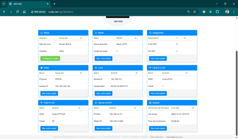Cert este că Cudy WR1500 nu-i un router de top, nu are astfel de pretenții, iar eu consider că se descurcă suficient de bine la capitolul performanță, cu tot ce înseamnă asta.