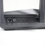 În spatele router-ului se află elementele de conectivitate: 4 x LAN cu viteze de 10 / 100 / 1000 Mbps, 1 x WAN pe 10 / 100 / 1000 Mbps, jack-ul de alimentare, butonul de pornire și butoanele fizice pentru Wi-Fi on / off, WPS și locașul de resetare. Aș spune că designul său nu s-a demonetizat prea tare, de parcă designul contează așa mult la un router. Accentul ar trebui pus pe performanțele sale și pe partea de fiabilitate.