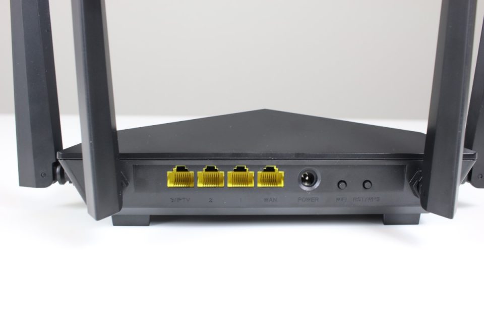 În partea spate se află 4 porturi RJ-45: 3 x LAN pe 10 / 100 Mbps și 1 x WAN pe 10 / 100 Mbps. Se adaugă Wi-Fi b/g/n și Wi-Fi ac, dispune de dual-band (2.4 și 5 GHz).