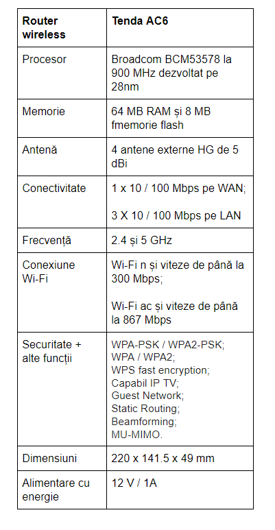 Tenda este un producător de routere wireless cunoscut în România pentru raportul preț / specificații adus de dispozitivele aflate în oferta sa comercială. Tenda AC6 cred că se află printre routerele wireless de volum din țara noastră.