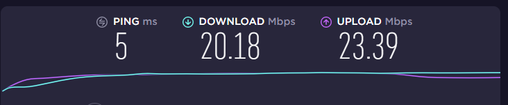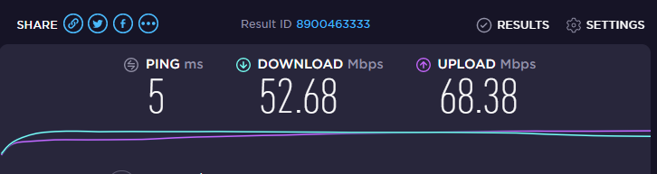 L-am testat pe 2.4, 5 GHz și pe fir cu un laptop ASUS ROG, pe 2.4 și 5 GHz pe OnePlus 7T. Nu sunt prea multe de comentat, pe WAN și LAN permite doar 10 / 100 Mbps și rezultatele pe fir și Wi-Fi ac în 5GHz sunt aproape de maximul disponibil.