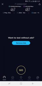Samsung GALAXY S8 Plus – 467 Mbps la download și 487 Mbps la upload, Wi-Fi ac pe 5 GHz;