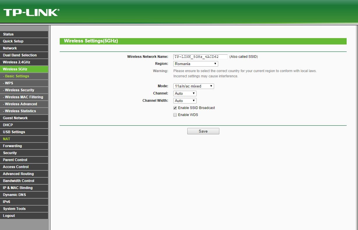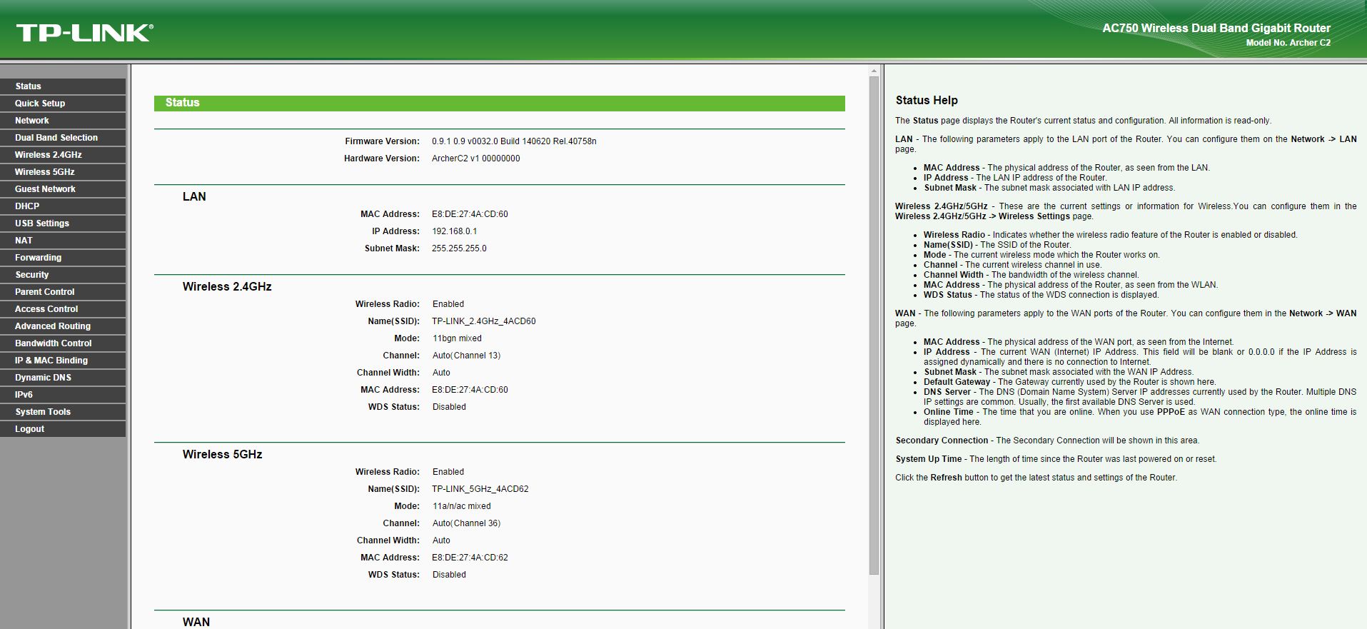 Câteva capturi de ecran cu setările router-ului TP-Link Archer C2 AC750:
