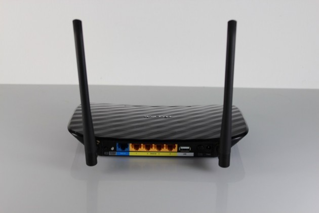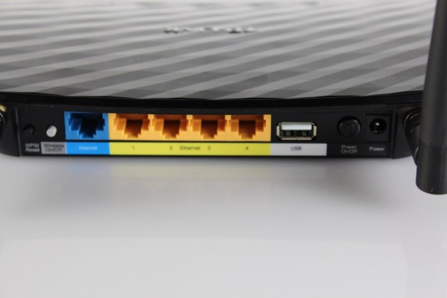 Pe spatele router-ului dați de 4 x RJ-45 + 1 x RJ-45, toate pe 10/ 100 / 1000 Mbps, USB 2.0 și jack pentru încărăctor. În ce privește semnalul s-a descurcat destul de bine, contează câte elemente blochează router-ul. Mă uitam că în funcție de asta și viteza variază mult, fără perete între router și laptop sau telefon mobil se ating valori cu 30 – 40% mai mari față vitezele atinse când un obstacol se interpune.
