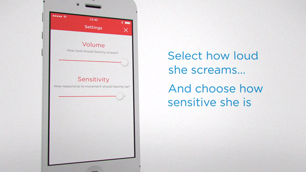 Sammy Screamer se numeşte acesta şi reprezintă un smiley sub formă de triunghi ce poate fi ataşat oricărui lucru asupra căruia vrei să fii cu ochii 24 de ore din 24. Mai exact, ataşezi acest triunghi acelui obiect şi dacă cineva îl atinge sau îl mută din locul în care l-ai lăsat, Sammy “ţipă” şi primeşti automat o notificare pe smartphone care îţi transmite acest lucru. Astfel poţi verifica dacă cineva vrea să îţi citească mesajele secrete, dacă cineva vrea să îţi mănânce felia de prăjitură sau pur şi simplu ca părinte să vezi dacă al tău copil este în cameră sau nu.