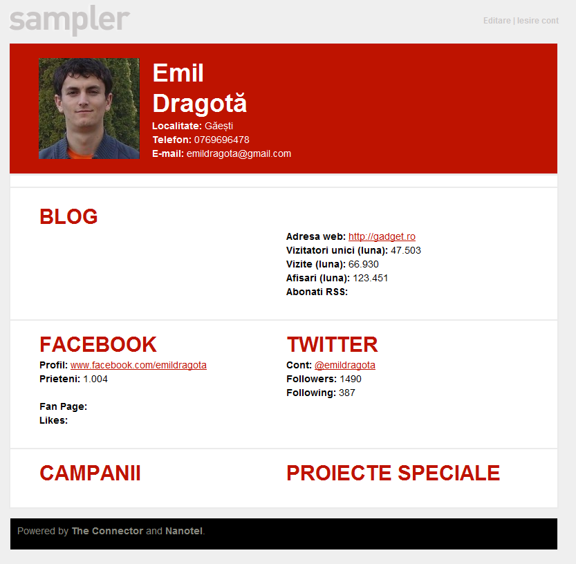 Este o inițiativă a lui Cristian Manafu alături de Dragoș Șchiopu. Se adresează celor care au o prezență activă în social media cu blog, profil de facebook, twitter și activități aflate în derulare sau programe la care a participat. Profilul meu este în curs de update și îl găsiți aici. Pare a fi un fel de rețea socială nișată. Pe baza datelor introduse s-ar putea face un fel de clasament care să fie la dispoziția companiilor interesate. Este în stadiu alpha și cu siguranță că vor mai sosi schimbări.