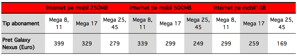 – Promotional, in 12 decembrie, utilizatorii pot achizitiona din magazinele Vodafone noul Galaxy Nexus cu un discount de 70 Euro (TVA inclus), cu orice pachet smartphone cu durata de doi ani